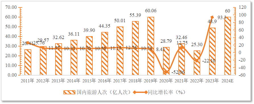 根据此前中国旅游研究院(文化和旅游部数据中心)发布的《2023年中国旅游经济运行分析与2024年发展预测》,预计2024年全年国内旅游人数将超过60亿人次。